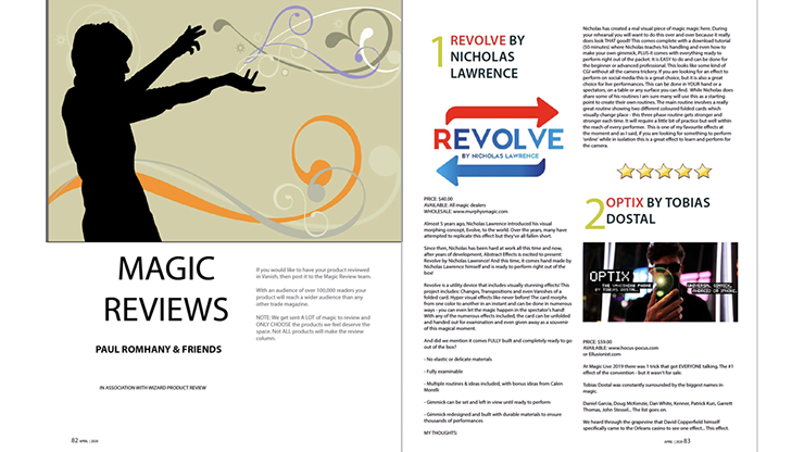 Paul Romhany started VANISH in 2011 and is considered the most cutting-edge magazine for magicians in the world. Each issue contains magic tricks, reviews, essays, feature stories and more.