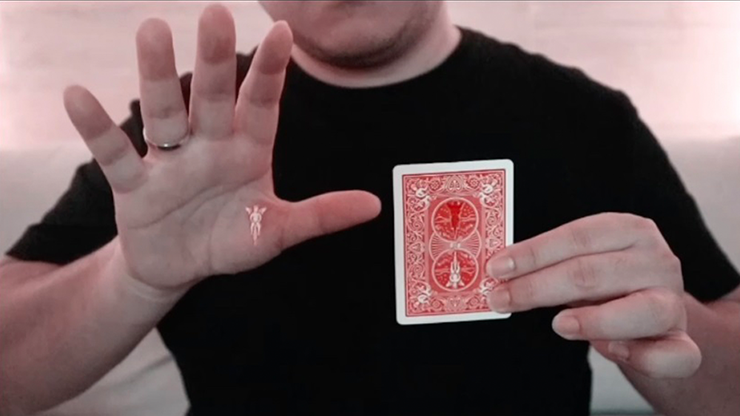 The angel image on the back of a playing card  disappears slowly, and reappears outside the playing card then slowly floats  back to  the playing card from which it came.